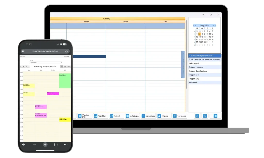 - De kassa-/desktopversie van de agenda draait uitsluitend op Windows