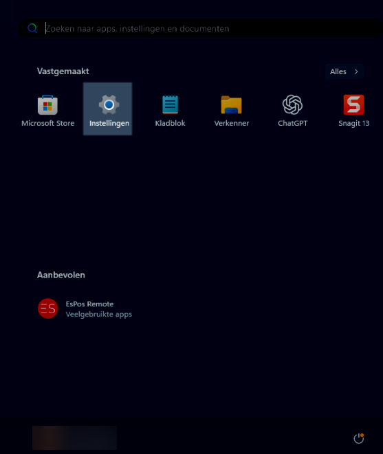 - Klik op Start → Instellingen (⚙️) of druk op Win + I