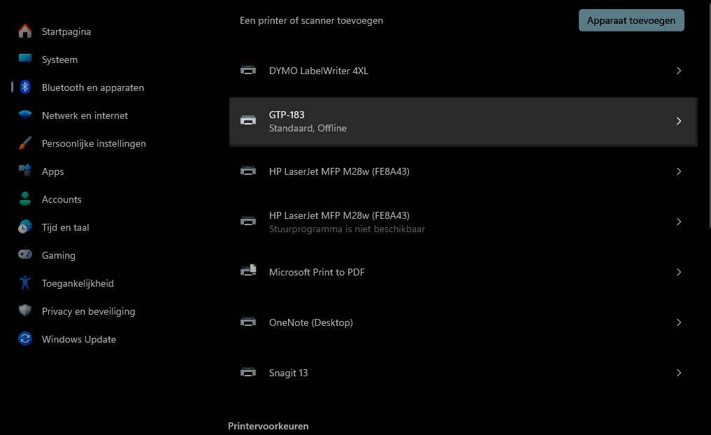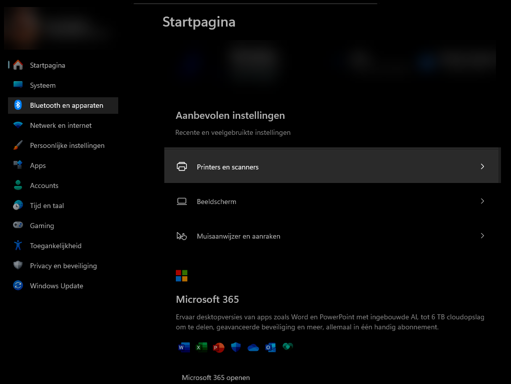 - Ga naar Bluetooth en apparaten → Printers en scanners