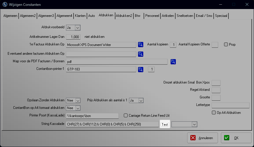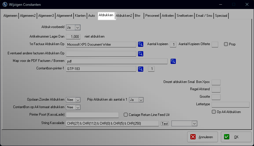 - Ga naar Instellingen → Constanten 1 → tab Afdrukken