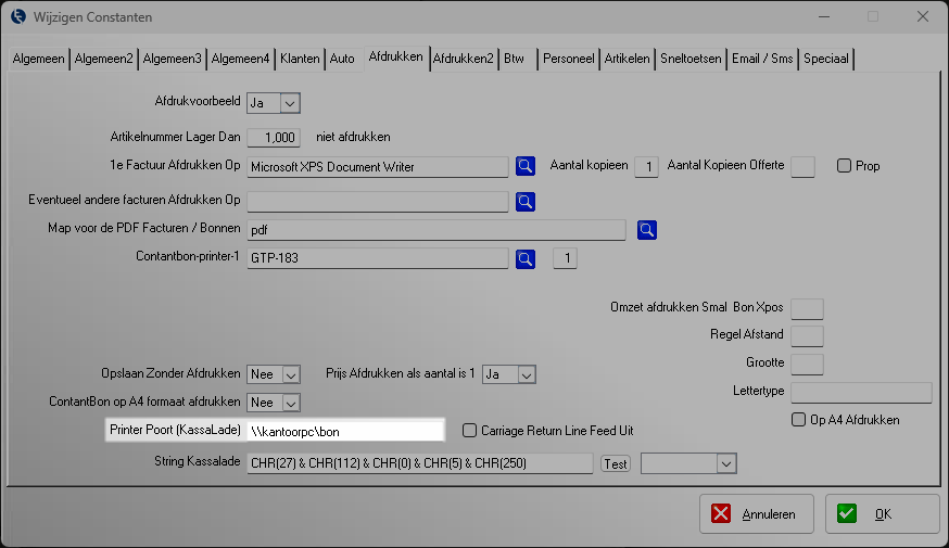- Vul deze in bij Printer poort (kassalade), bijvoorbeeld: