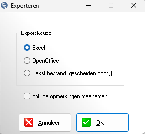 Het exportbestand kunt u later gebruiken als basis voor een import.