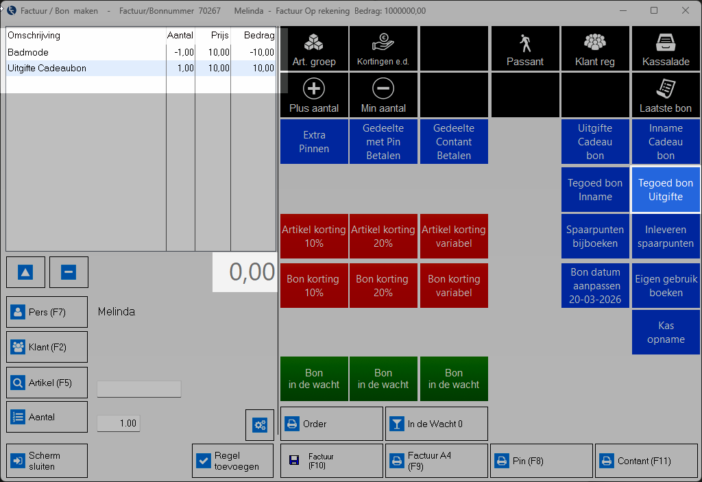 Dit artikel gebruikt u wanneer u een tegoedbon uitgeeft aan de klant.