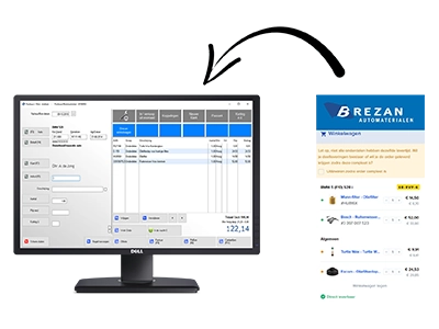 Wanneer u onderdelen selecteert in de winkelmand van uw grossier (op de website), kunt u deze met één druk op de knop overnemen in de kassa via de koppeling.
