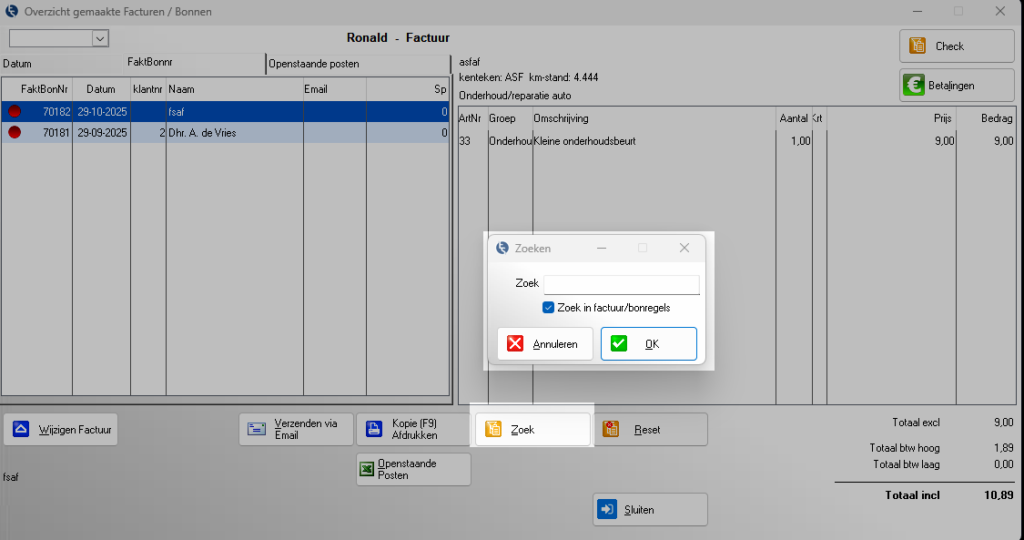 Wilt u uitgebreider zoeken? Vink dan de optie aan: Zoek in factuur bonregels