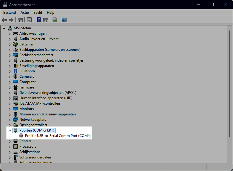 - Gebruik je een USB-naar-serieel adapter? Volg dan de stappen hieronder om te controleren welke COM-poort Windows toewijst.