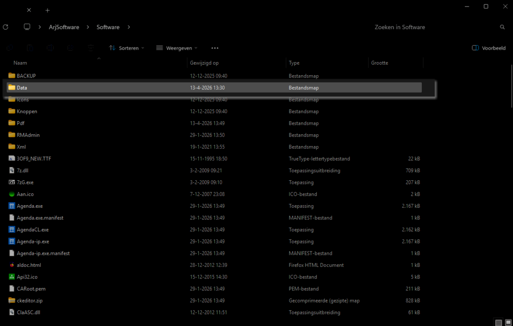- Zoek in de geopende map naar de map Data (mogelijk moet u iets omhoog scrollen).